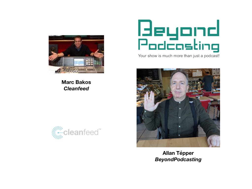 En el episodio 7 de BeyondPodcasting, Allan Tépper conversa con Marc Bakos de Cleanfeed, el servicio en línea que permite tanto la grabación remota o la conexión en vivo/en directo remote que supera a las alternativas, e incluye cartuchos virtuales para segmentos pregrabados en la versión paga.
